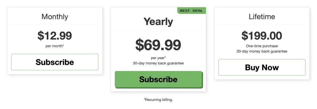 Clozemaster costs $12.99 per month, $69.99 per year, or $199.99 for a lifetime subscription. There is also a free version of Clozemaster, which gives users access to a limited amount of content without paying.
