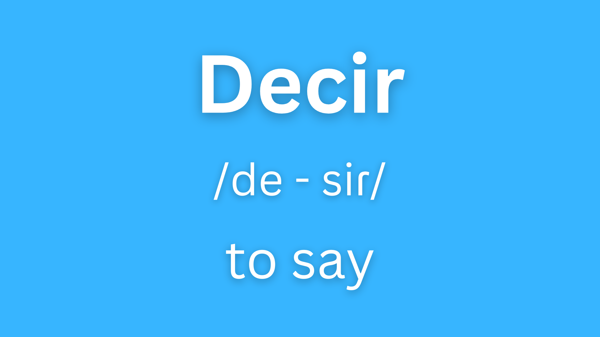 The verb decir most nearly means “to say.” It can also mean “to tell” or “to state” something. We also use it to describe the action of telling something or talking about something.
