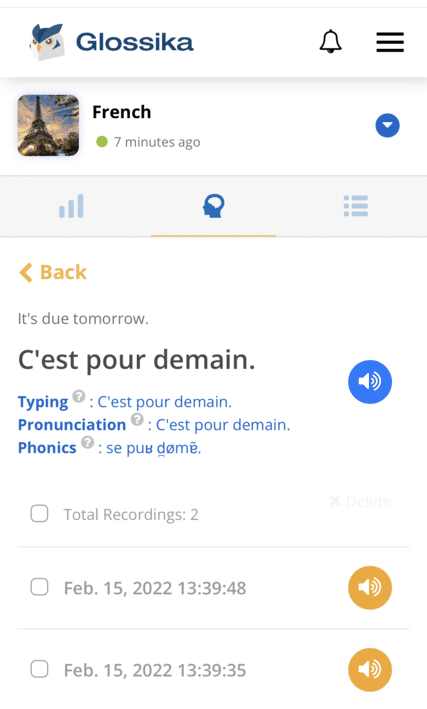 If you’re like me, you might need some motivation to stay on track with your learning. Some apps like Mondly help you track your progress, but Glossika takes a different approach. You can set goals for learning new material and for review in your account. At the end of each week, you receive a weekly progress report so you can see how you are advancing. Even though it’s small, this feature was helpful for me!