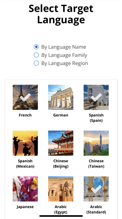 Glossika has over 64 languages to choose from. They also divide some languages by geographical area, like Spanish from Mexico and Spanish from Spain. With one subscription, you have access to all of the languages available so you can learn multiple languages at a time. It’s easy to switch between the different languages.