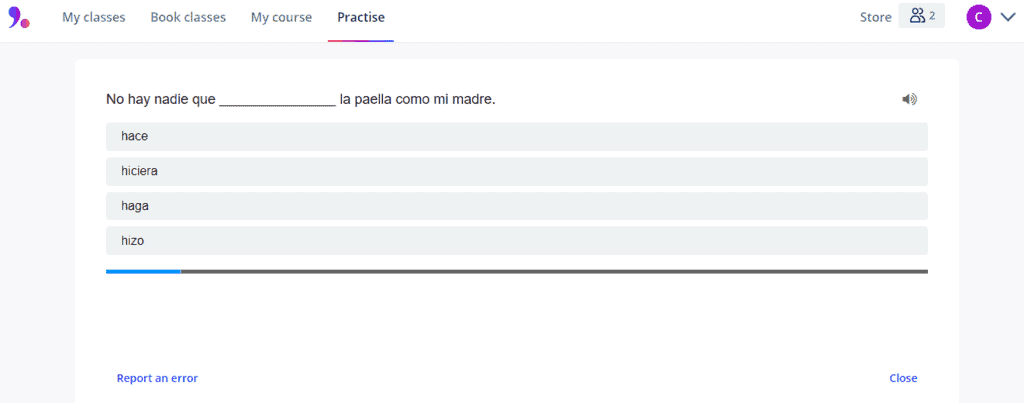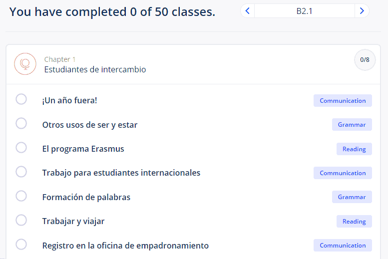 The Lingoda Spanish course covers levels A1 to B2 and has between 100 and 150 lessons in each level. Each class focuses on a different skill, like reading, communication, speaking, or grammar. The classes are organized and easy to follow, but it’s important to know that Lingoda teaches Spanish from Spain (Castellano), not Latin American Spanish. If that’s what you want to learn, it may be better to try a Lingoda alternative like italki.