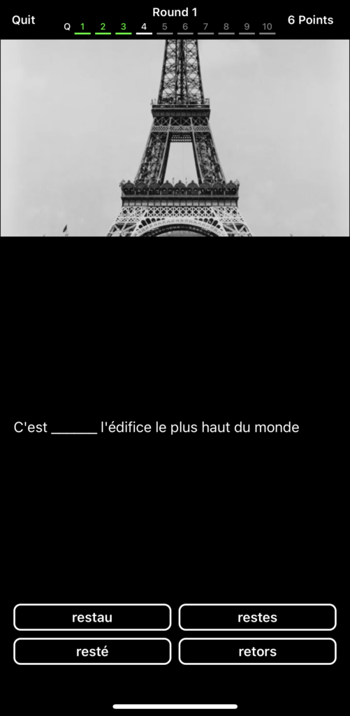 Depending on the language course you choose, each video comes with at least three different practice exercises. In my opinion, the vocabulary practice is the most useful game.